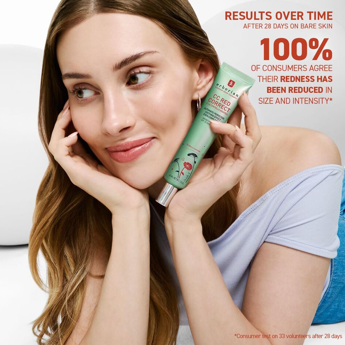 Erborian CC Red Color Correcting SPF 25 Green Pigment Cream, Neutralizes Redness, Calms Skin, Lightweight, Tone‑Perfecting Primer, Korean Skincare